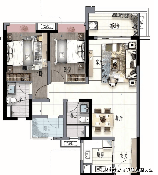 南向约99㎡3+1房2卫:户型颠末升级优化,具有灵动的入户空间,为业从供给更多的收纳取利用空间;南向约6米阳台,让业从尽揽天然景不雅;从卧采用套房设想,保障了业从的私密糊口,提拔了栖身的舒服度。
